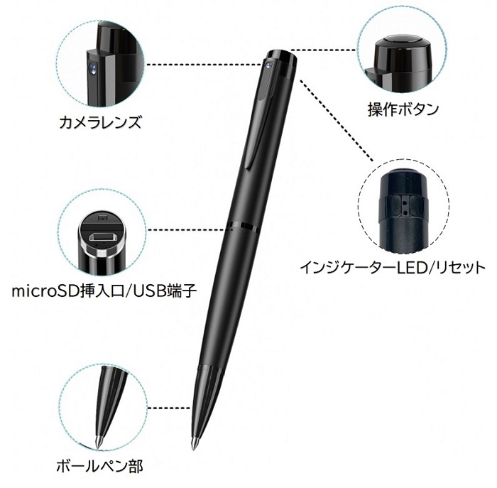ボールぺン型マイクロSDビデオカメラ